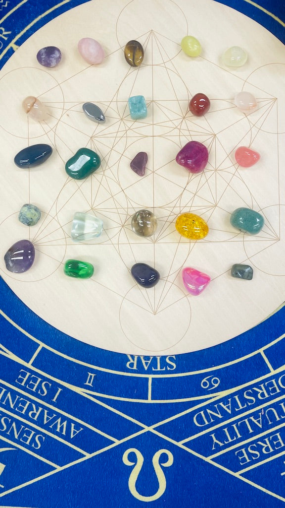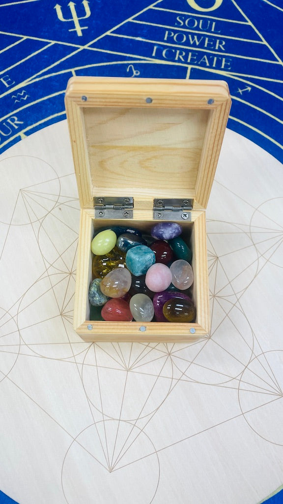 写真の24種類のクリスタルタンブル(通常のタンブルより小さめサイズ)のみで、boxやボードは含まれません