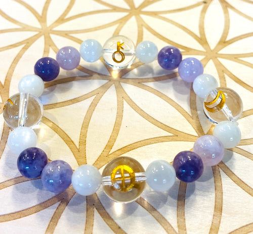 7方向から運気を上げるクリスタルグリッド(アメジスト)25cm Septagram Sacred geometry Crystal grid crystals set